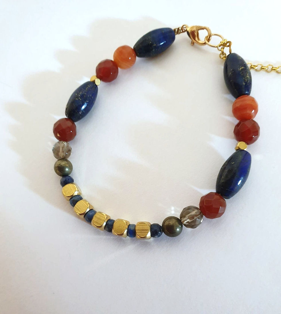 Gold Lapis lazuli Carnilian Earrings, Ancient style